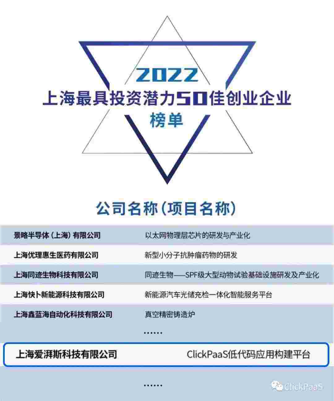 CGPAY钱包 作为国内低代码PaaS平台的领军企业,,,与120家创企入围角逐。。。期间接受了来自德同资本、、、、领中资本等知名投资机构的10位投资人组成专家评委团的背靠背盲选。。并最终入围“2022上海最具投资潜力50佳创业企业”榜单,,被列入“上海市重点培育创业企业库”。。。